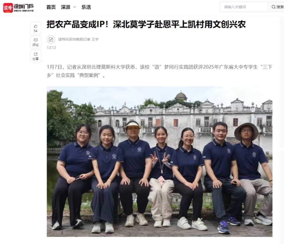 1月7日,记者从深圳北理莫斯科大学获悉,该校“语”梦同行实践团获评2025年广东省大中专学生“三下乡”...