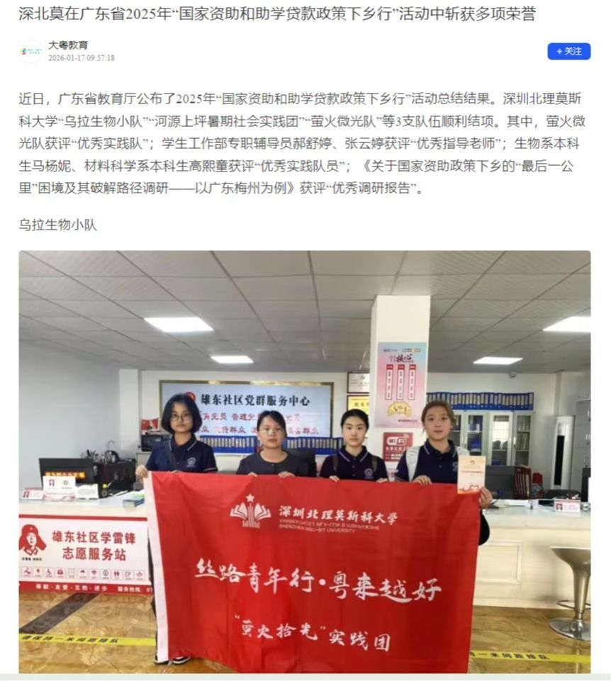 近日,广东省教育厅公布了2025年“国家资助和助学贷款政策下乡行”活动总结结果。深圳北理莫斯科大学“...