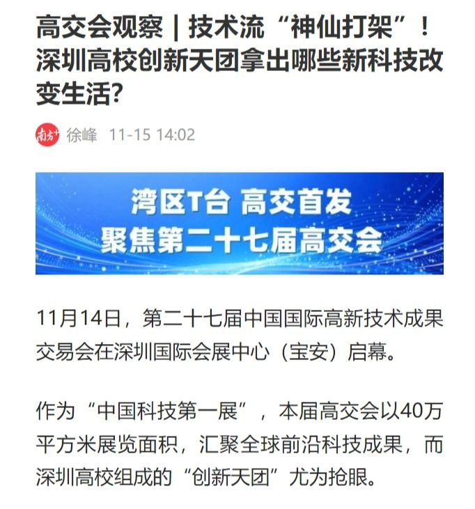 11月14日,第二十七届中国国际高新技术成果交易会(以下简称“高交会”)在深圳国际会展中心拉开帷幕。...
