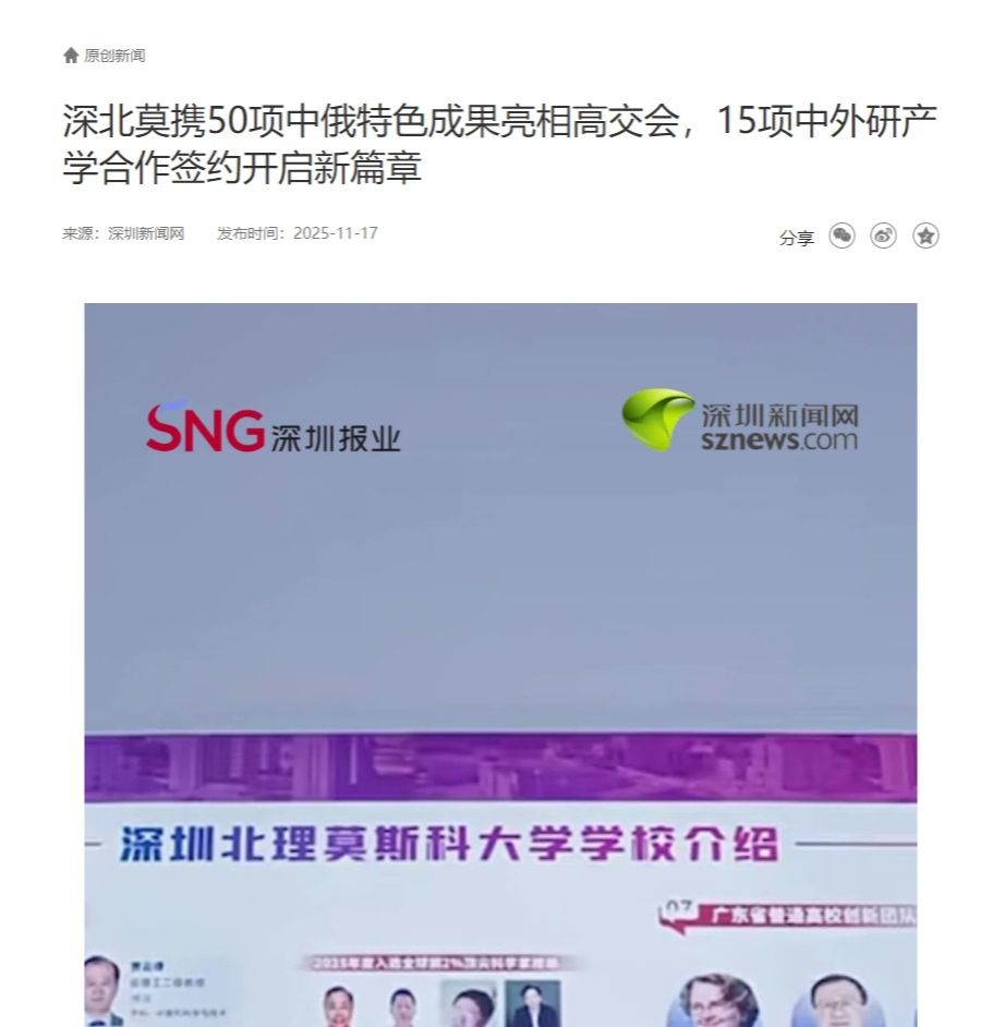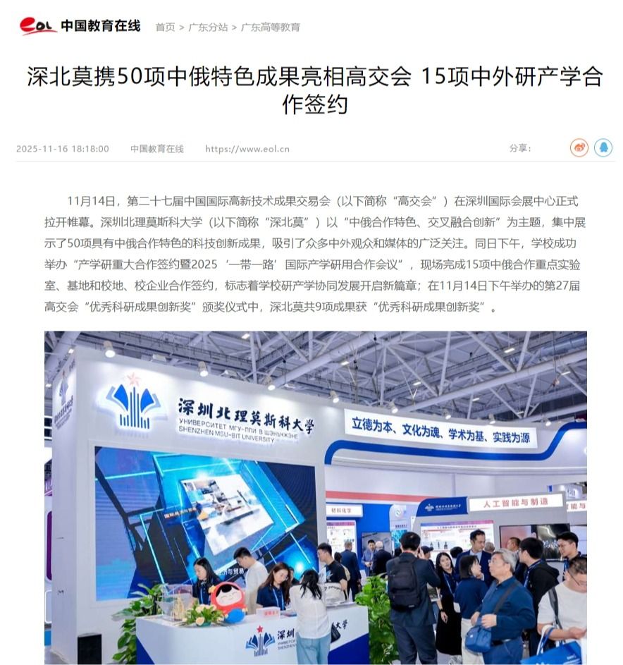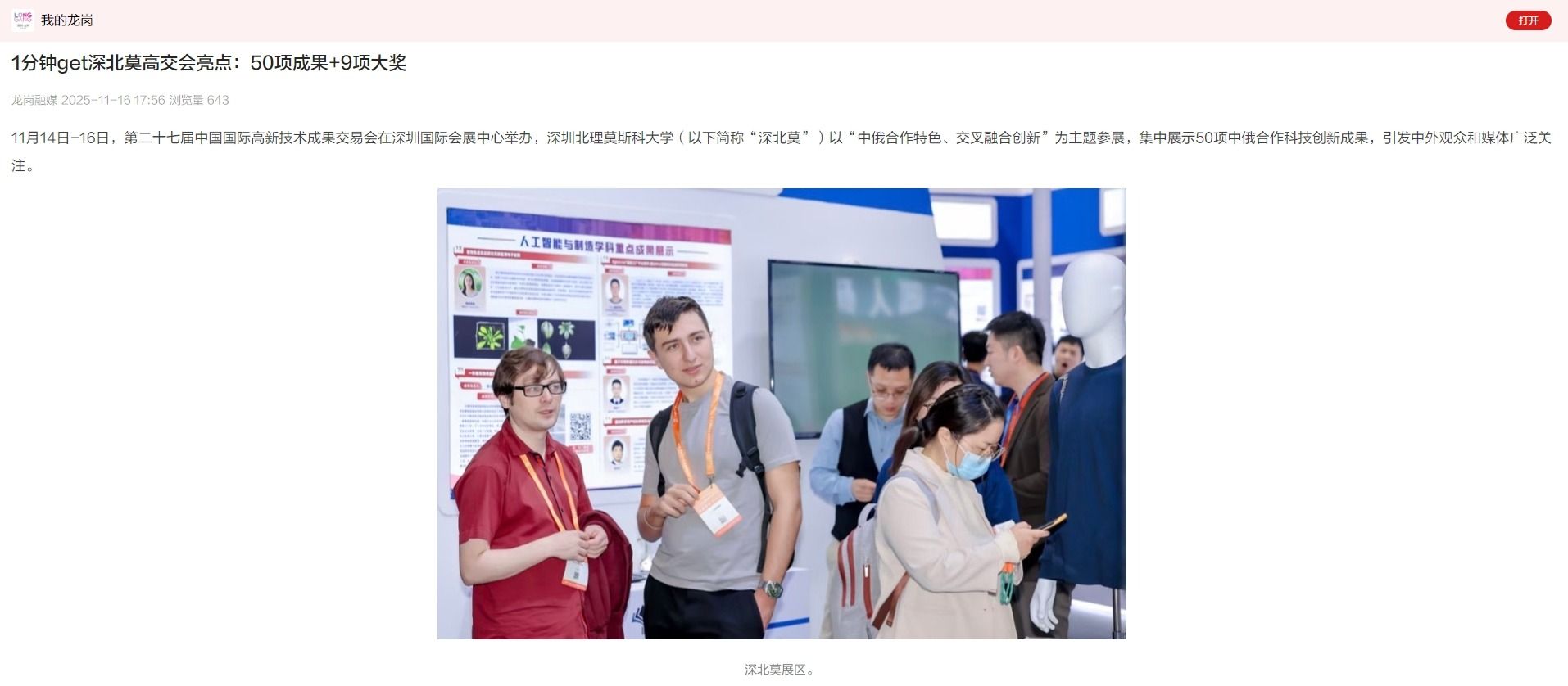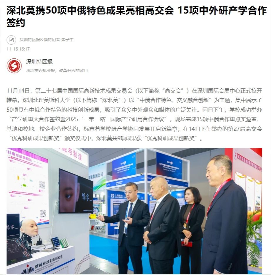 11月14日-16日,第二十七届中国国际高新技术成果交易会在深圳国际会展中心举办,深圳北理莫斯科大学(以...