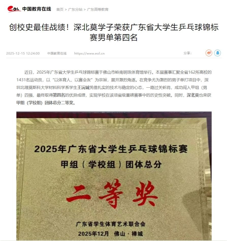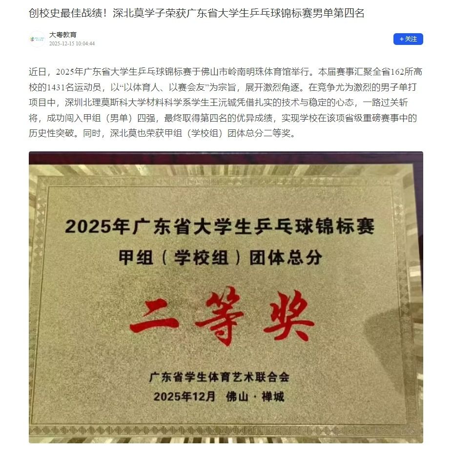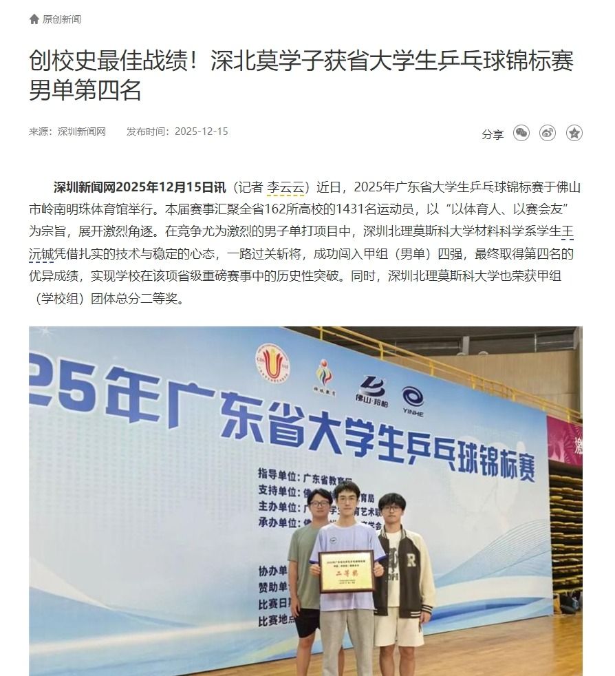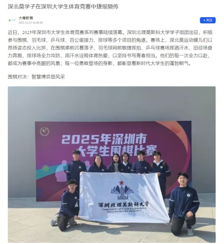 近日,2025年深圳市大学生体育竞赛系列赛事陆续落幕。深圳北理莫斯科大学学子组团出征,积极参与围棋、...