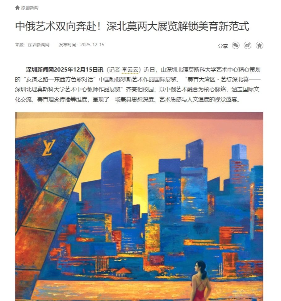 近日,由深圳北理莫斯科大学艺术中心精心策划的“友谊之路—东西方色彩对话”中国和俄罗斯艺术作品国际...
