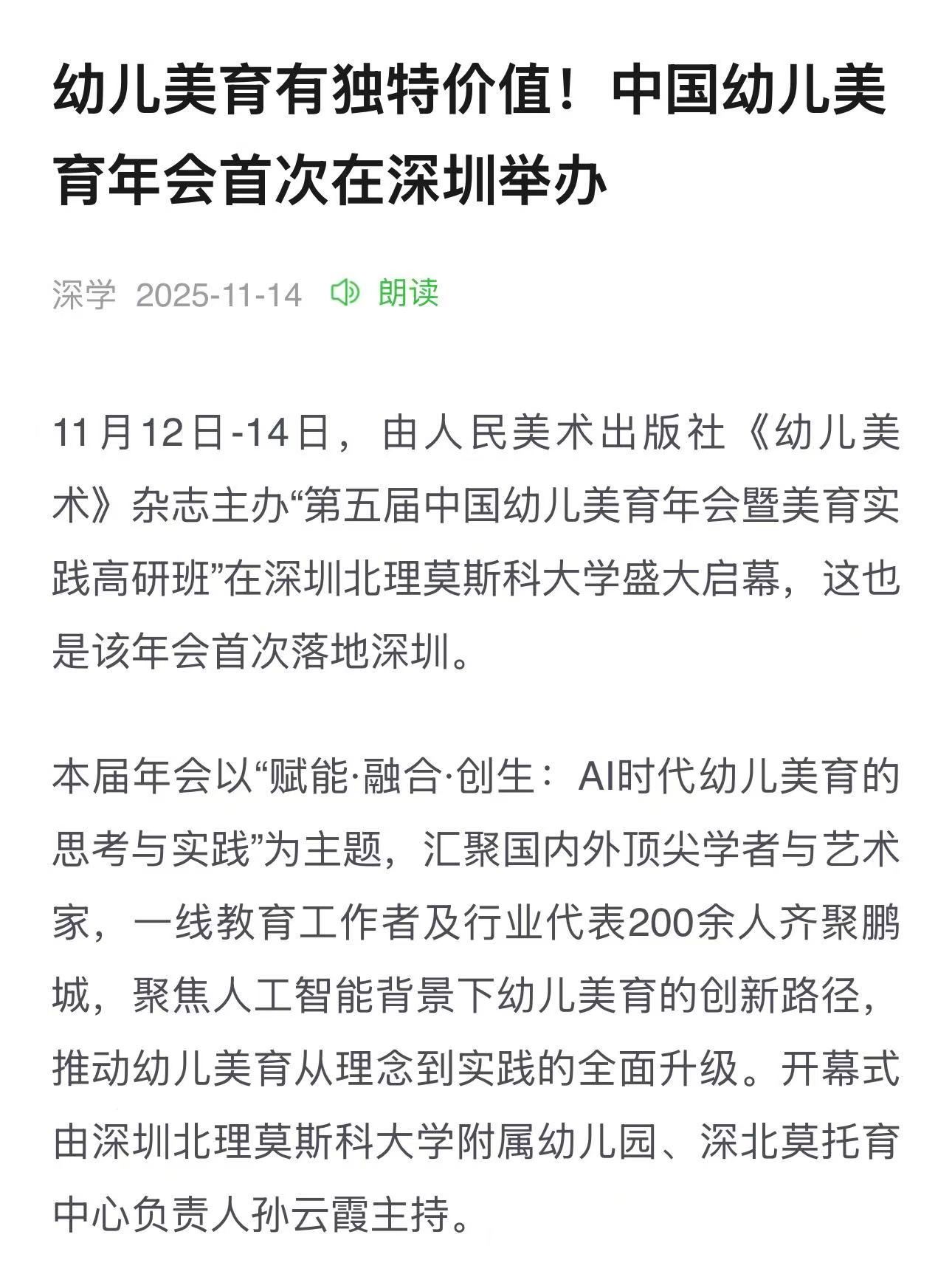 11月12日-14日,由人民美术出版社《幼儿美术》杂志主办“第五届中国幼儿美育年会暨美育实践高研班”在深...