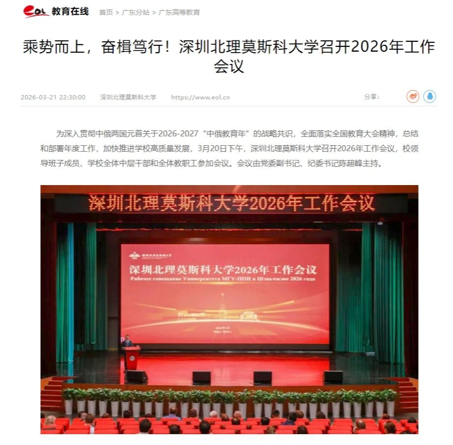 近日,深圳北理莫斯科大学发布2026年本科综合评价招生简章,考生须于2026年5月20日23:59前,登录该校本...