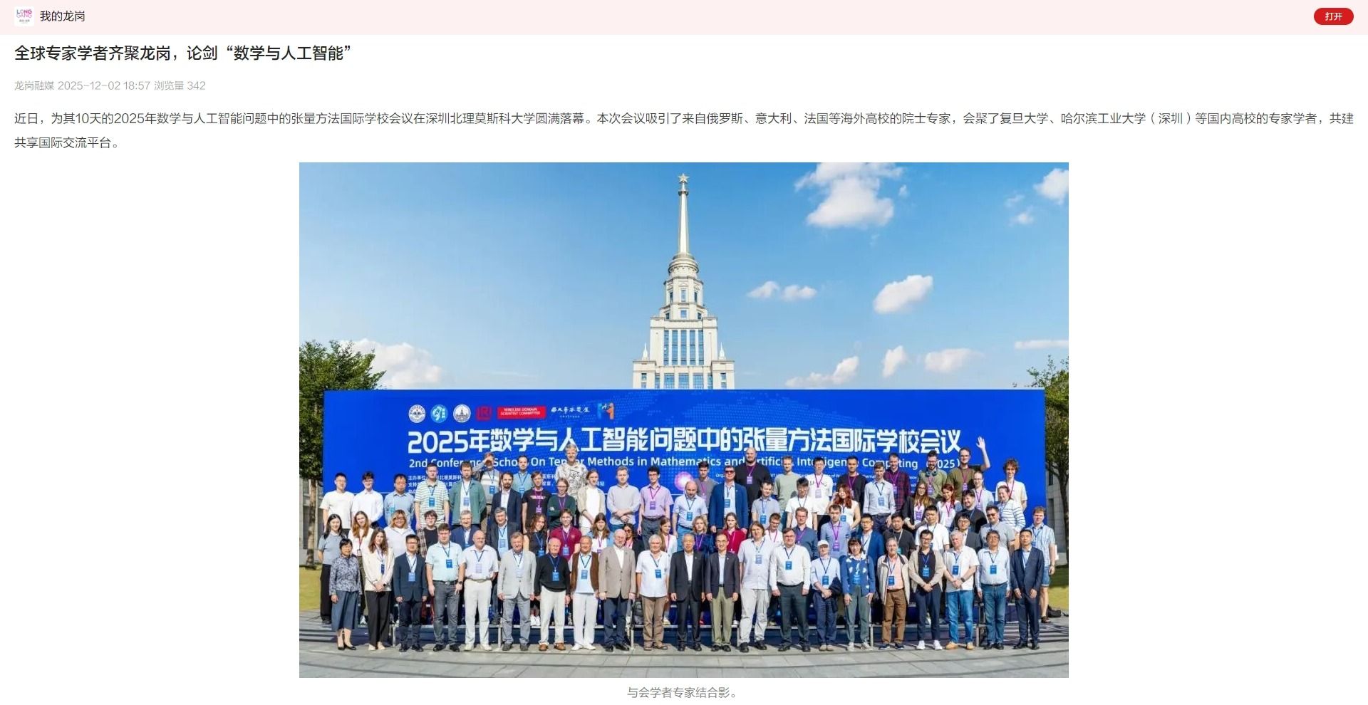 近日,为其10天的2025年数学与人工智能问题中的张量方法国际学校会议在深圳北理莫斯科大学圆满落幕。本...