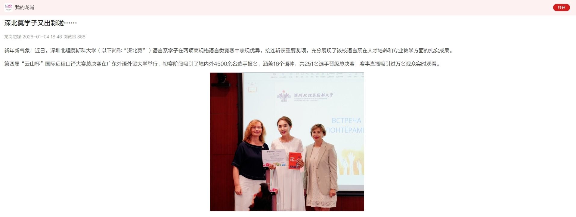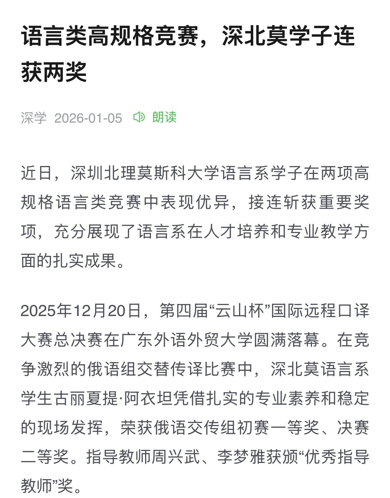 新年新气象!近日,深圳北理莫斯科大学(以下简称“深北莫”)语言系学子在两项高规格语言类竞赛中表现...