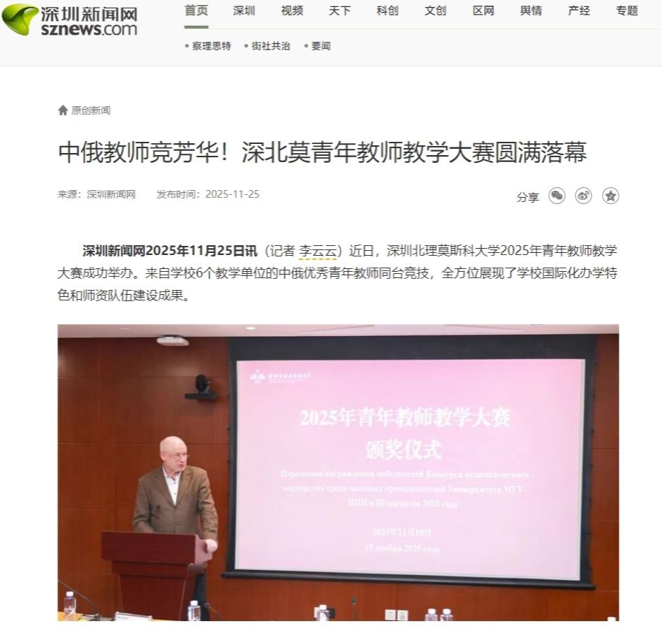 近日,深圳北理莫斯科大学2025年青年教师教学大赛成功举办。来自学校6个教学单位的中俄优秀青年教师同台...