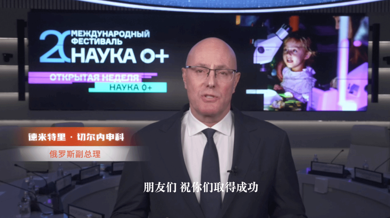 德米特里・切尔内申科通过视频发表致辞。他指出,知识科学文化节“科学无界”开放周,是由俄罗斯联邦总统弗拉基米尔・普京与中华人民共和国主席习近平共同倡议、将于2026-2027年举行的中俄教育主题年的重要前奏活动。开放周期间,公众将聆听到顶尖学者的精彩讲座,参与实践课程、大师班以及各类商务和创意活动。他充分肯定了活动举办地深北莫,作为中俄教育合作的旗舰项目,为俄中科学合作作出的重要贡献。感谢莫斯科大学和深北莫对该活动的支持,并送上了美好祝愿:“祝你们取得成功,获得创作灵感,涌现突破性想法,勇敢地推动科学前进!”