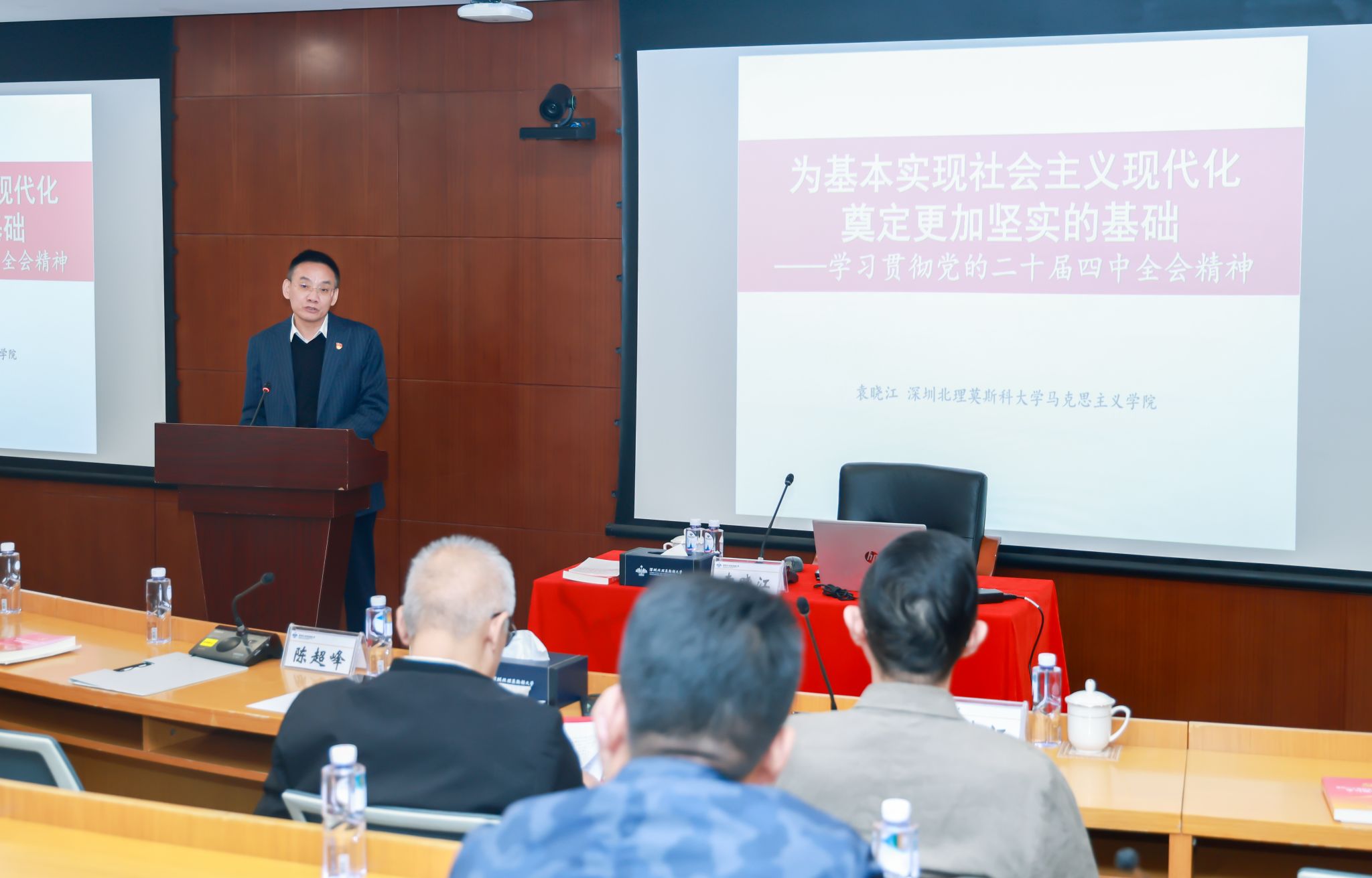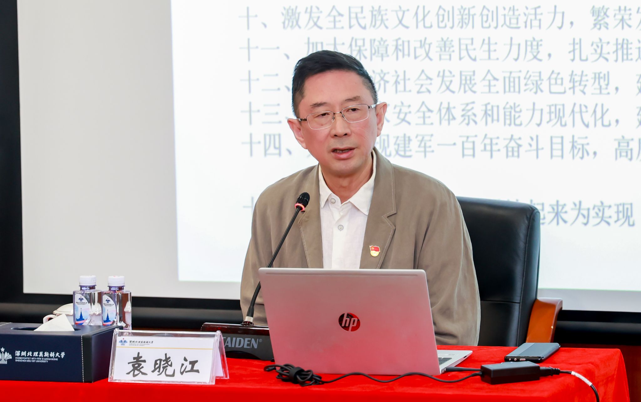 11月27日,深圳北理莫斯科大学召开党委理论学习中心组(扩大)学习会暨党员干部学习党的二十届四中全会精神会议,邀请深圳市委宣讲团成员、广东省基层理论宣讲先进个人、学校马克思主义学院教授袁晓江作专题辅导。校长、党委副书记李和章,党委副书记、纪委书记陈超峰,学校中方中层干部、各党支部书记参加学习。陈超峰主持会议。