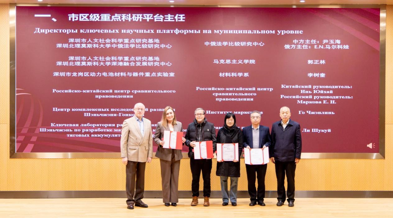 随后,伊万琴科宣布了深圳北理莫斯科大学区级及以上重点科研平台主任的聘任决定。李和章、伊万琴科共同为受聘人员颁发聘书。
