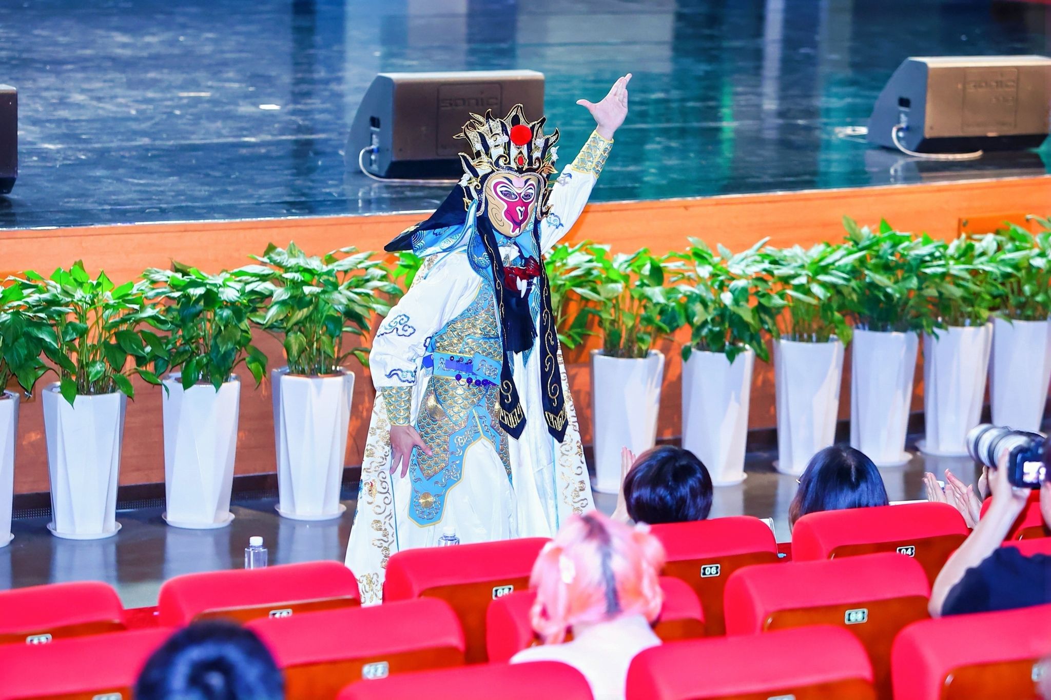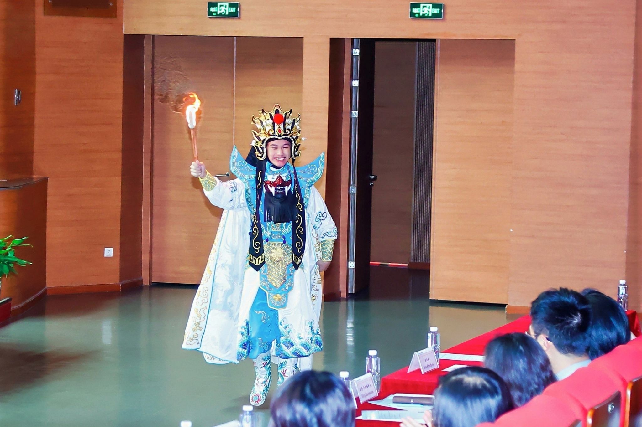 晚会还设置了特别表演环节。2025级语言系陈天逸同学带来的川剧变脸与吐火表演,技艺精湛,与观众热情互动,将整场活动的氛围再次推向高潮。