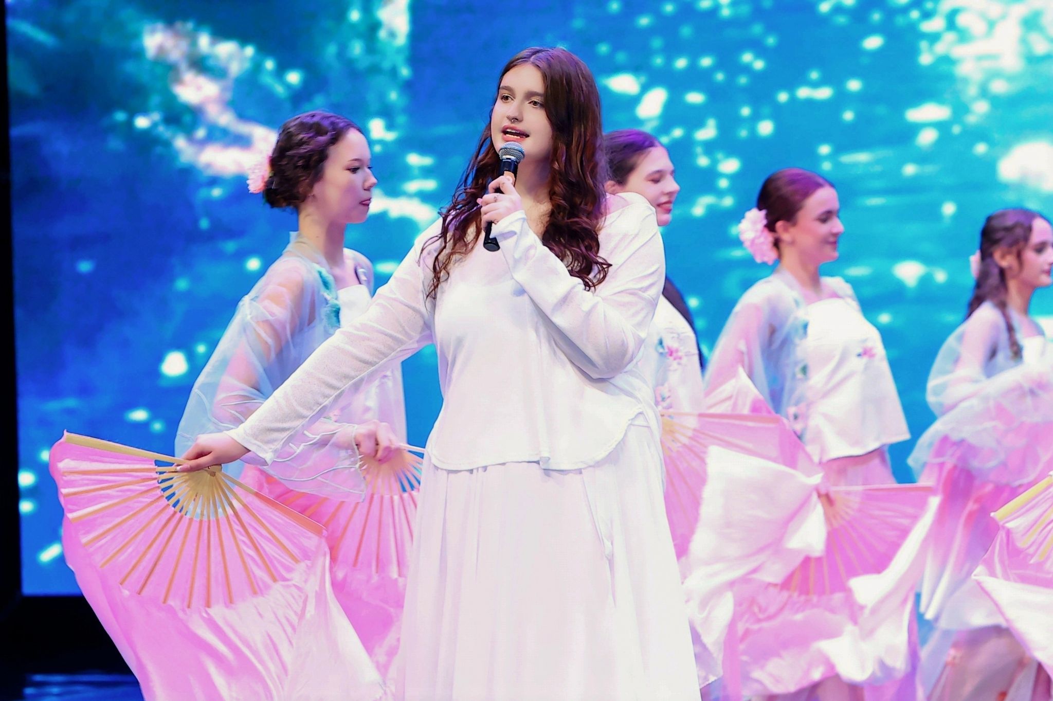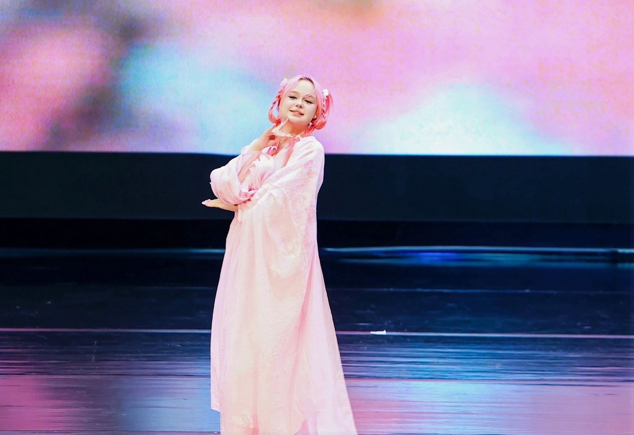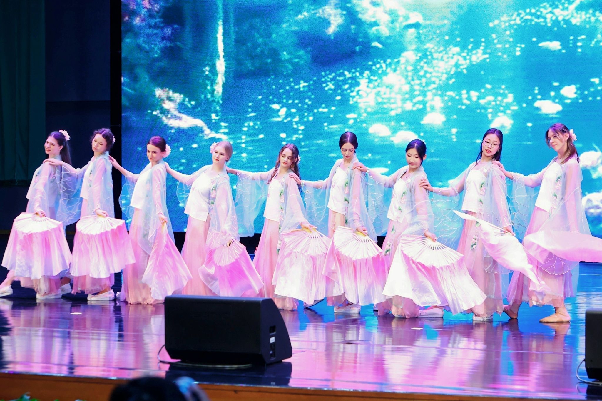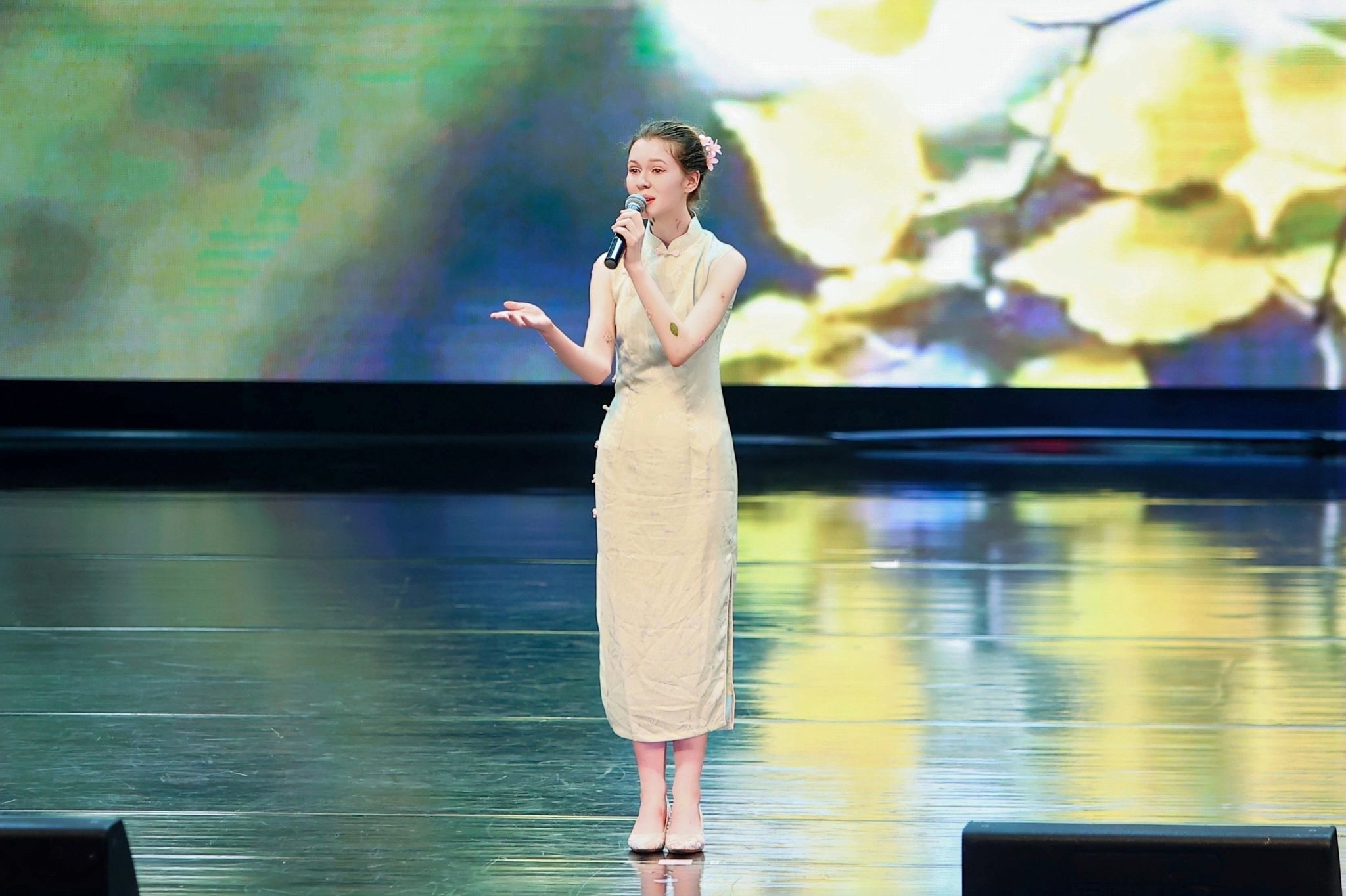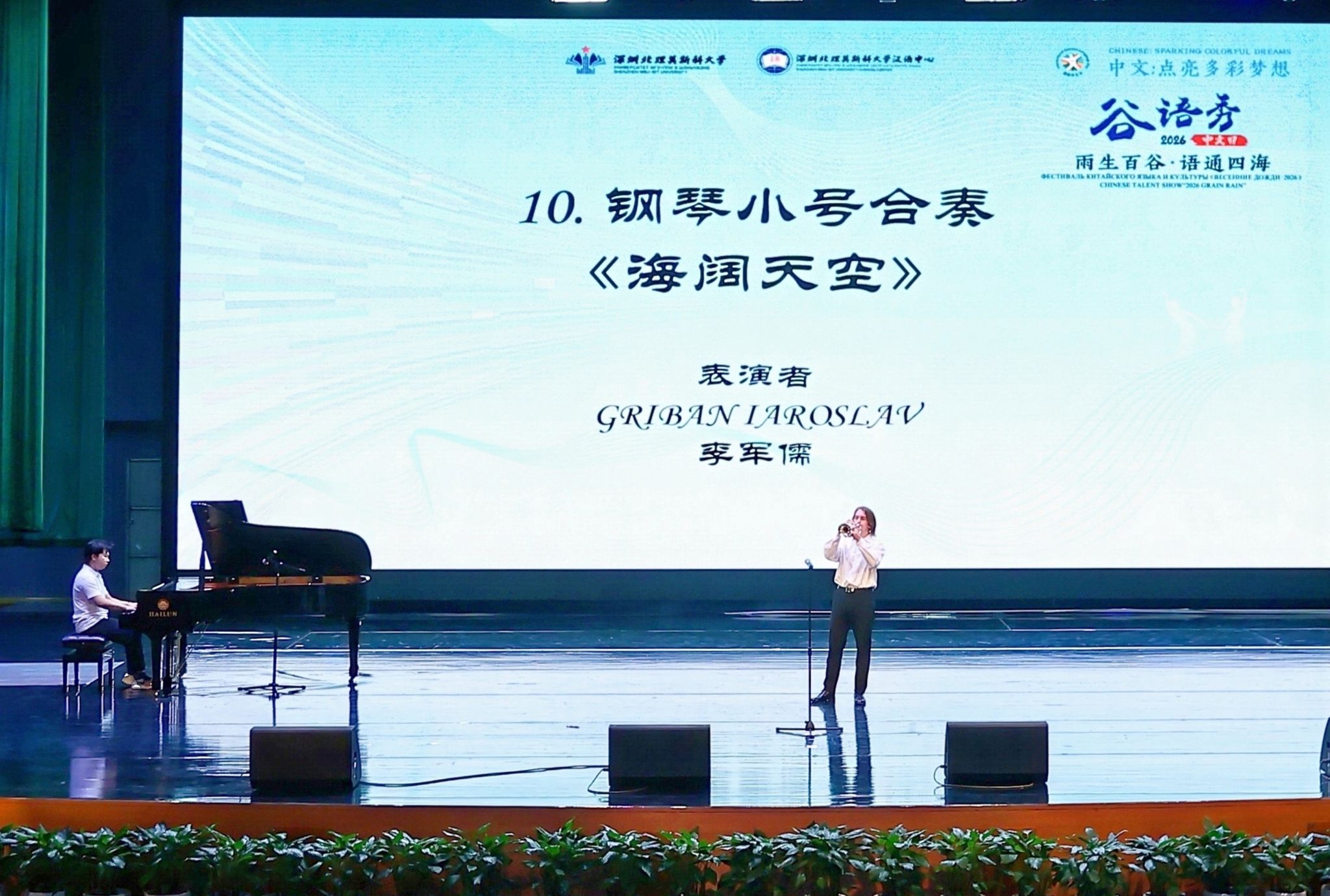 歌舞类节目同样精彩纷呈。中俄学生演绎的钢琴小号合奏《海阔天空》,以经典旋律致敬自由与理想。舞蹈《云缘》《一池月莲梦》《雨下一整晚》用柔美舒展的肢体语言,将中国古典美学的清雅与梦幻呈现得淋漓尽致。国际学生合唱邓丽君经典曲目《在水一方》,并以深沉悠远的嗓音唱出《贝加尔湖畔》的空灵意境。独唱《如愿》则以温暖而富有力量的歌声致敬时代与梦想,歌声落下,掌声经久不息。
