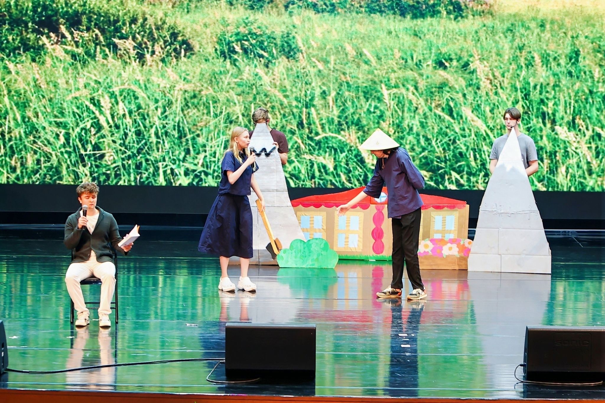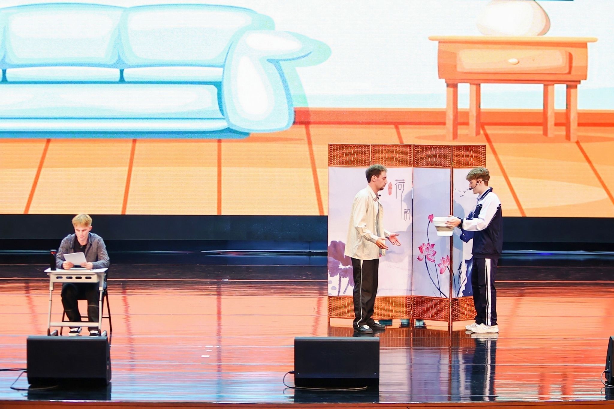 语言类节目亮点纷呈。同学们深情演绎《初春》《当我真正开始爱自己》《致橡树》《青春》等中外名篇,用流利的中文诠释了初春的细腻,与自我对话的哲思,对理想爱情的追寻和对青春的礼赞。小品《小学生作文》以国际学生写作文的趣事为蓝本,通过夸张的表演与巧妙的构思引得全场笑声不断。成语短剧《愚公移山》《叶公好龙》生动再现经典成语故事,让观众在欢声笑语中感受中国成语的独特魅力。