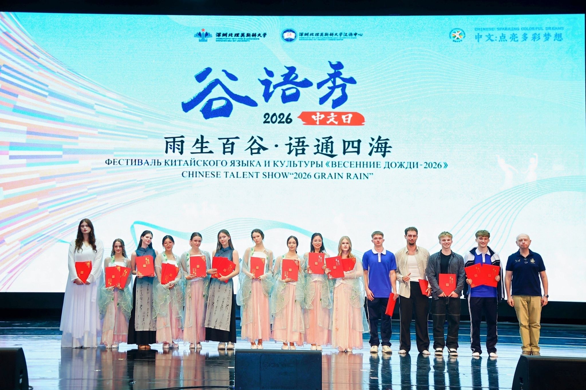 深圳北理莫斯科大学2026国际中文日系列活动已圆满落幕,从文化共创到雅集体验,再到才艺晚会,中外师生在汉字、服饰、朗诵、音乐、舞蹈、短剧中深切感受到了中华语言文化的博大精深,也在互动协作中增进了中俄友谊。汉语中心将依托“中俄教育年”和深北莫获批建校十周年的重要契机,精心策划更多高品质、多元化的文化活动,搭建更广阔的语言文化交流平台,让中文之美浸润校园,让中俄友谊之树常青,让文明之花在交流互鉴中绽放得更加绚丽多彩。