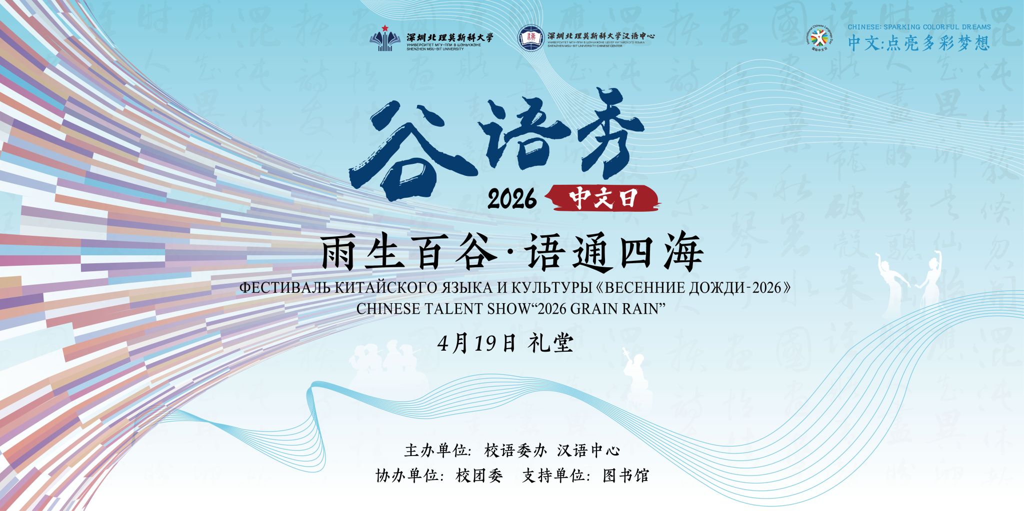 4月19日,在第17个联合国中文日到来之际,深圳北理莫斯科大学语委办与汉语中心积极响应教育部中外语言交流合作中心的“中文:点亮多彩梦想”活动倡议,精心策划并举办系列主题活动。通过文化共创、谷雨雅集、“谷语秀”才艺晚会等多种形式,为全校师生呈现了一场兼具温度与深度、传统与创新的文化盛宴,让中文之美跨越山海,中俄友谊在文明交流中历久弥新。