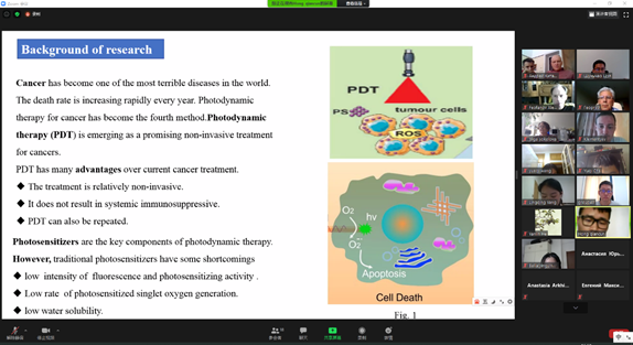 2020届硕士研究生毕业典礼刚刚落下帷幕,下一届硕士毕业生的论文研究工作已经提上了日程。8月3日北京时间16:00(莫斯科时间11:00),学校生物系组织2019级硕士研究生举行毕业论文研究进展汇报会。会议采用ZOOM视频会议软件进行国际连线,参加会议的有纳米生物技术方向6名硕士研究生及其导师以及部分纳米生物学方向教授,同时参会的还有生物系主任及其他科研、教学管理人员。